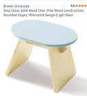 Step Stool Solid Wood Pine Wood Construction Rounded Edges Minimalist