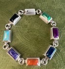 Vtg Taxco Mex 925 Sterling Silver Multi 7 Gemstone Link Bracelet 7.25” 33.24g