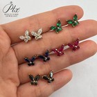 S925 Sterling Silver Moissanite Butterfly Piercing Earring Ruby Earrings Jewelry