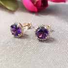 2 Ct Round Cut Lab-created Amethyst Wedding Halo Stud Earrings Rose Gold Plated