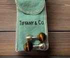 Vintage Tiffany & Co Sterling Silver Tiger Eye Barbell Cuff Links+ Pouch And Box