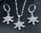 Sterling Silver Crystal Snowflake Pendant Necklace W/ Leverback Earrings Set