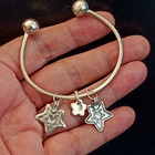 Vintage Silver Charm Cuff Bracelet 925 Israeli Handmade Star Flower Design 13.1g