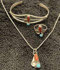 Navajo Turquoise Coral Sterling Silver Cuff Bracelet Ring Necklace Pendant 12.9g