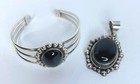 Sterling Silver Onyx Cuff Bracelet And Pendant Set. Mexico 925