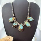 Sterling Southwestern Style 25 Teardrop Turquoise Cluster 17" Necklace For Women