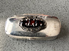 Sterling Silver Vintage Rounded Rectangle Pill Box With Garnet Detail