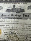 Central Savings Bank Arizona Stock Certificate #133. D18