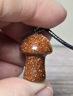 Carved Gold Sand Stone Crystal Stone Mushroom Pendant Necklace On Black Cord