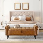 Storage Bedroom Bench For End Of Bed Upholstered Storage Ottoman Pu Leather