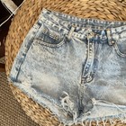 Women’s Sky Blue Denim Cotton Casual Summer Stretch Slim Beaded Size S Shorts