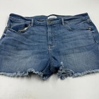 Loft Womens Denim Shorts Size 32 Blue Cotton Blend Raw Hem Casual Stretch Shorts