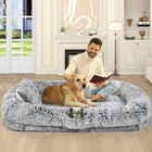Jumbo Gray Suede Pet Dog Bed Orthopedic Waterproof Extra Large Memory Foam 55x47