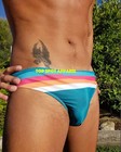 Todd Sanfield Swim Brief Men's Small Blue Striped Vibrant Rainbow Micro New