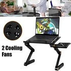 Adjustable Laptop Table Stand Lap Tray Sofa Bed Notebook Foldable Desk Cool Fan
