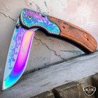 8.75” Wood Military Tactical Edc Spring Assisted Open Blade Folding Pocket Knife