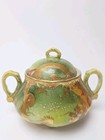 Antique Hand Painted Nippon Gold Dragon Creamer Lidded Sugar Bowl Green Stamp