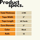 12 Rolls - Duct Tape 2 Inch X 60 Yards 6 Mil - Utility Grade Adhesive Tape Black