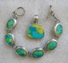 Vintage Midcentury Taxco Mexico 925 Sterling Silver & Green Onyx Bracelet