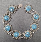Vintage 925 Sterling Silver Taxco Turquoise Ornate Link 7" Bracelet Mexico 13.3g