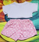 Vintage Build A Bear Pink & White Teddy On Cloud Pajamas Shirt Shorts Outfit 24h