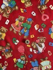 1.5 Yd Vintage Teddy Bear Fabric Hallmark Wamsutta Bandanas Bows Hearts Stars