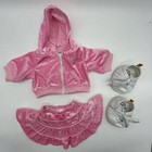 Build A Bear Pink Perfect Velour Track Suit Hoodie Skirt Shoes Teddy Outfit Set