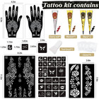 191 Pcs Temporary Tattoo Stencils Kit, 6 Standard, 191 Designs & 6 Cones