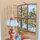 Sunset Designs Crewel Embroidery Wall Art – Framed Window Landscape – 16” X 20”