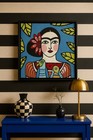 Woven Embroidered Textile Wall Art Frida Style Woman Birds Boho Decor 17”x17” Bp