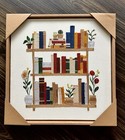 Bp Embroidered Bookshelf Wall Art Framed Textile Bookish Boho Library Decor