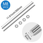 2 Pack M8-1.25mm Pitch Fully All Threaded Rod Studs,300mm/11.8" Long 304 Stainle