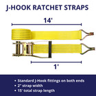 20 Pack Heavy Duty Cargo Strap Ratchet Tie Down Straps J Hooks 4000lbs 1.5"x20'
