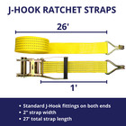 4 Pack 2" Inch X 27' Ft Ratchet Straps J Hook Tie Down Cargo