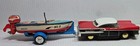Vintage Red Japan Tin Friction Cadillac Car W/boat, Speedy No 2 And Trailer