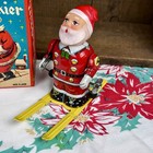 Vintage Santa Skier Wind Up Toy Japan 1950s 1960s Tin Litho Nos Working Box