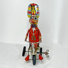 Vintage Tin Litho Wind Up Toy Duck On A Bike Western Germany