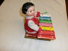Vintage Tin Litho Wind Up Retro Toy Girl Playing Xylophone
