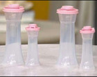 Tupperware Large & Small Hourglass Salt & Pepper Shakers Set Pink Tops New