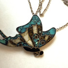 Navajo Double Butterfly Pendant Necklace Sterling Silver Turquoise, Jet, Coral