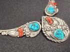 Southwest Statement Collar Necklace W/drop Coral Turquoise Sterling Silver