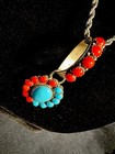 ⭐️stunning Sterling Silver Red Coral & Blue Turquoise Pendant Necklace