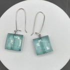 Vintage Aquamarine Square Crystal Glass Silver-tone Bohemian Dangle Earrings