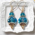 Artisan Elegant Blue Turquoise Crystal Dangle Drop Silver Earrings French Wire