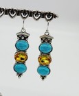 Crystal Dangle Earrings Turquoise Brown Sterling Silver Handmade In Usa