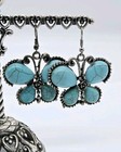 Butterfly Faux Turquoise Earrings Dangle Drop Pierced Dyed Stone Crystal 2 In