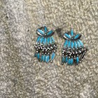 Silver Tone Navajo Turquoise Dangle Long Drop Chandelier Earrings Vintage Snap