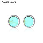 5mm Solid Sterling Silver 925 Round Green Turquoise Stud Earrings Gift Pe44