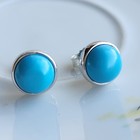 Solid 925 Sterling Silver 9.5mm Round Blue Turquoise Bezel Stud Earrings