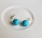New .925 Solid Sterling Silver Simple & Elegant 6mm Turquoise Ball Stud Earrings